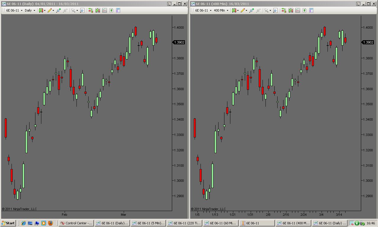 So rather than not using daily charts at all and using only 400 minute charts, is there a workaround or a data feed providier that allows displaying of real daily bars based on RTH session.?