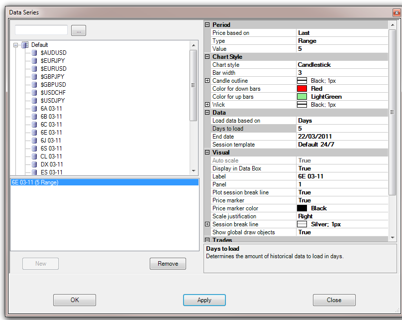 I just noticed in your screenshot that you are trying to plot an expired contract 03-11. You will need to roll your contracts forward to the next front-month.
