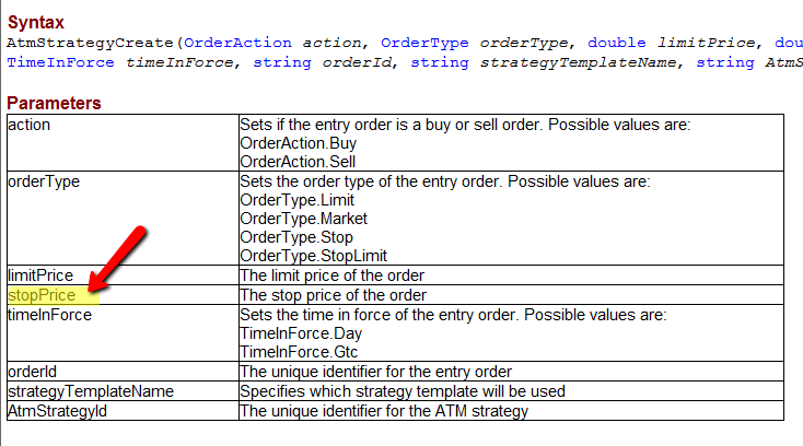 AtmStrategyCreate(Cbi.OrderAction.Buy, OrderType.Limit, Low[0], 0, TimeInForce.Day, orderId, "AtmStrategyTemplate", atmStrategyId);