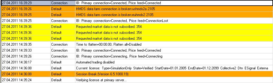 - after reboot and starting of NT 6.5 I can connect to IB (thru VPN, of course) and I receive quotes. But only for couple of minutes. It can be also one or two hours, but after this time the data feed will freeze. I do not see any changes in bid-Ask for selected future, no changes in the chart. There are no error messages. VPN seems to be ok and I can see some traffic.