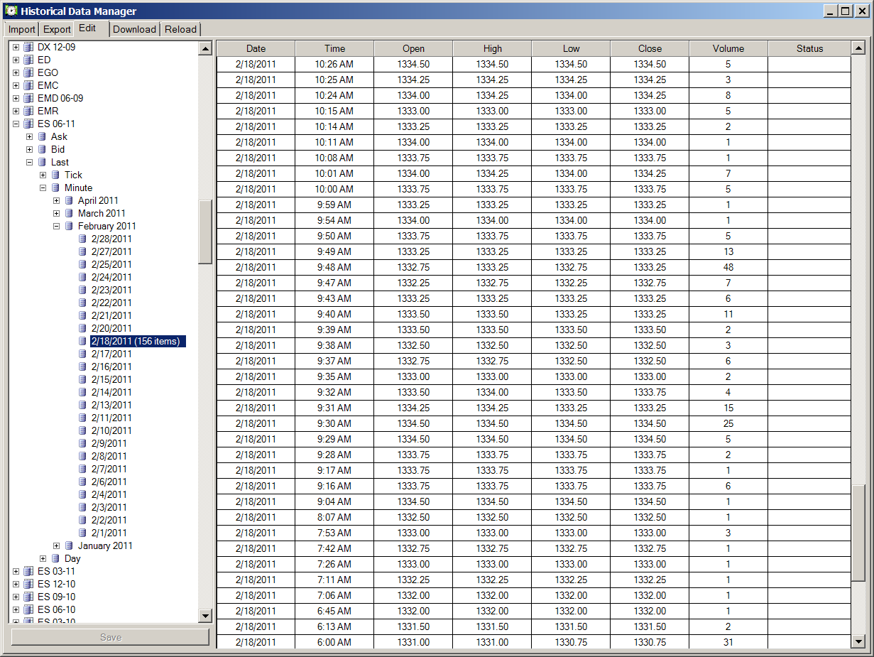 Image of ES 06-11 3MIN charts from 2/16/2011 thru 2/21/2011