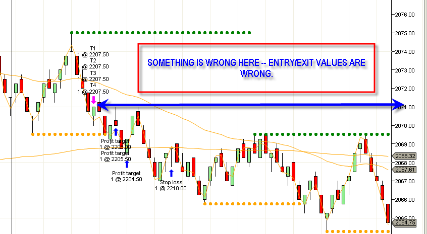 You will most likely need to debug your code to figure out why it is entering the trades where they are. (http://www.ninjatrader-support.com/v...ead.php?t=3418)Josh P.NinjaTrader Customer Service