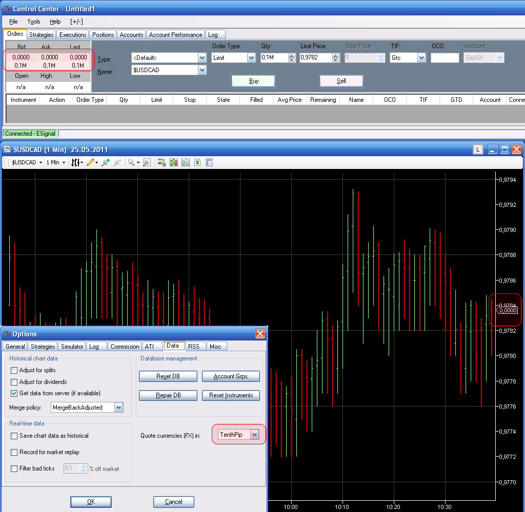I'm easily connected to ESignal data feed (thnx developers), but i have problem