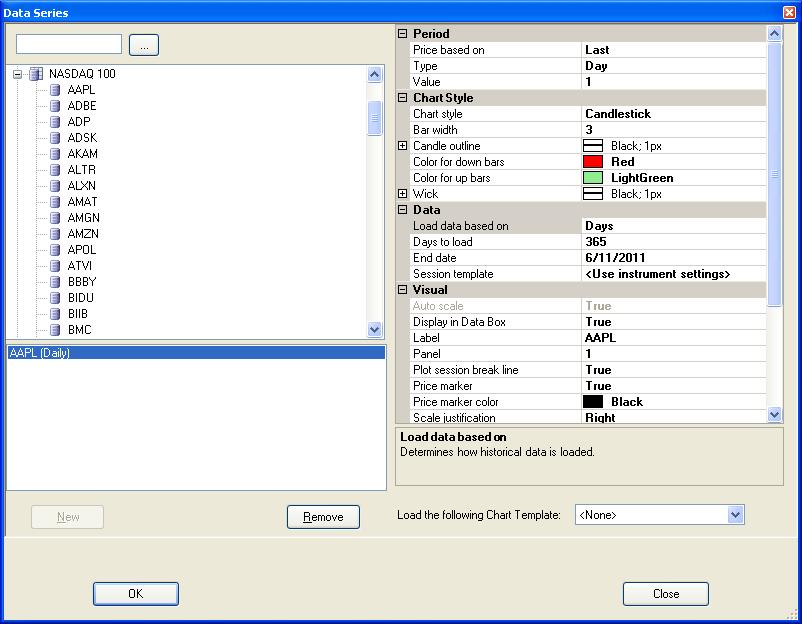 • In the Data Series menu, set the "Session Template" property to "Default 24/7", then click OK.