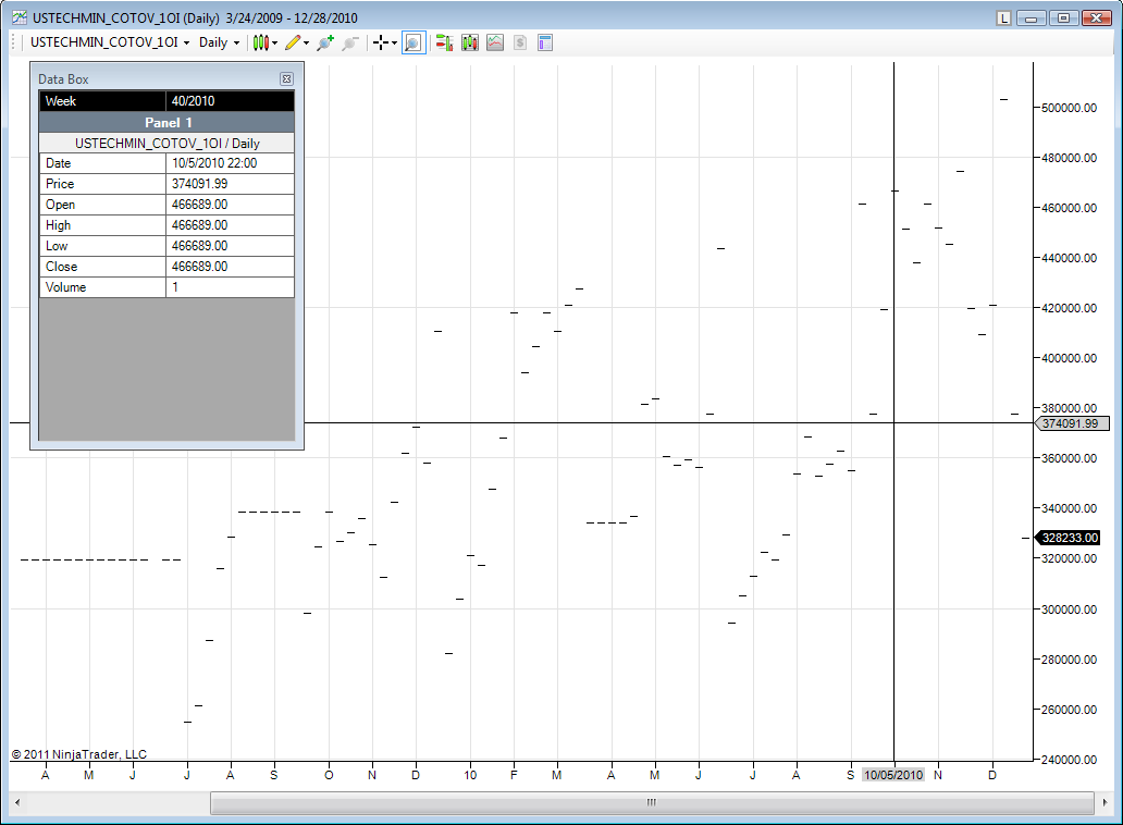 • To plot historical Data (from 1995-2011) I downloaded the original files from CFTC website and processed them with excel VBA to make txt.files out of it, which can be imported by Ninjatrader.