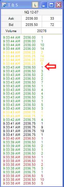 The Red arrow points to a trade at Ask (for 2036.50) then the next trade is above ask (for 2036.25)....