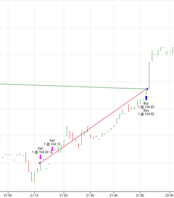 As you can see in the attachment the stop was for the two short positions but instead of calculate both losses the program calculated one loss and created one surreal gain using an old already closed position.