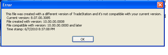 I'm using TS8.7 and followed the the Setup procedure for NINJATRADER.LED. I'm getting an error about imcompatibility with my current version. See attached file snapshot.png.