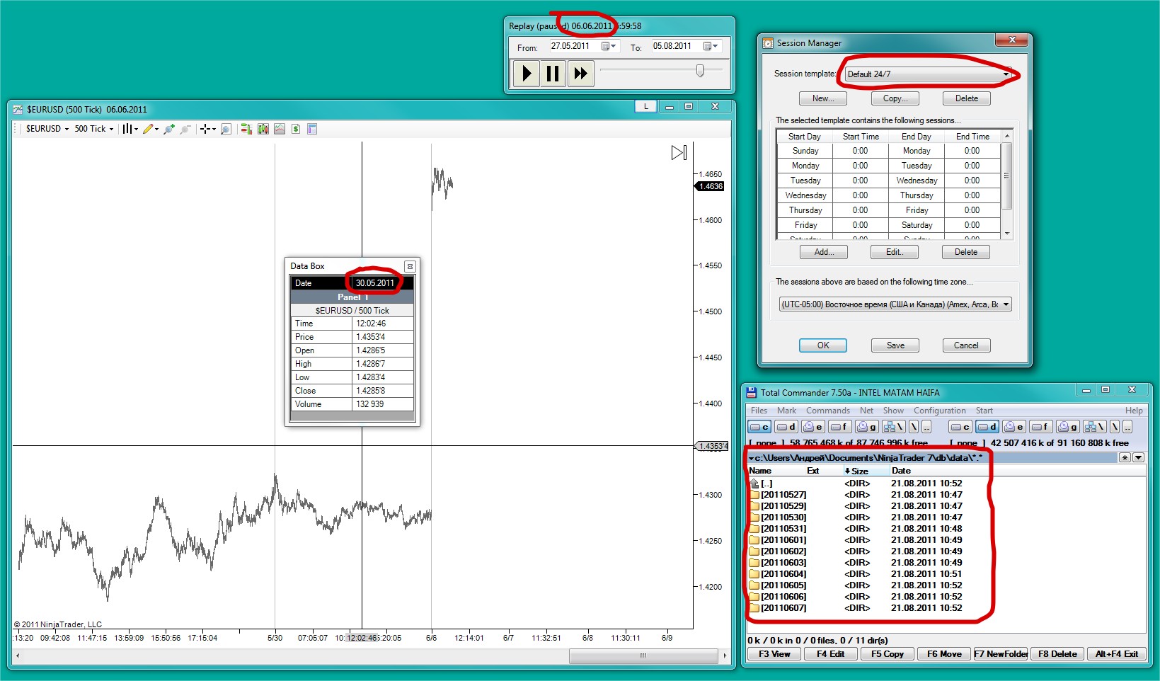 The screenshot in previous post show c:\Users\Андрей\Documents\NinjaTrader 7\db\data\ folder. So, the chart displayed replay data from db\data\ folder.
