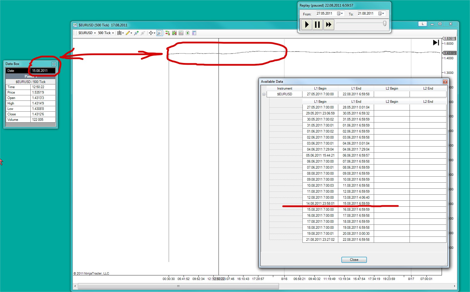 Besides, I have no any other EURUSD tick May - June 2011 data on my PC. Only replay data in db\data\ folder.