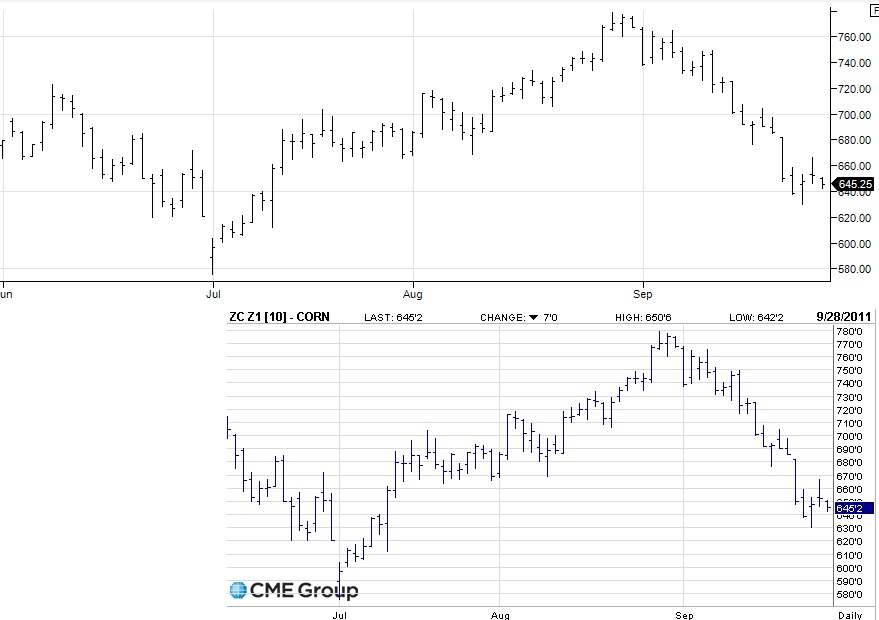 Your chart looks strange and I guess you use the contract-merge-option. I do not merge contracts. So the whole chart is based on ZC 12-11 (I forgot to mention that).