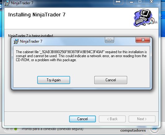 "Failed to download NinjaTrader"