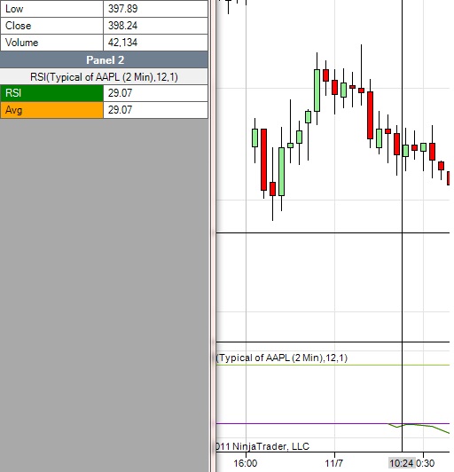 i have 5 day two min intraday data for aapl which I loaded into ninjatrader using the historical data manager. interesting thing that none of the indicator I put in my strategy match my broker's chart. e.g. for RSI I am using a period of 12 and 0. RSI values dont match between the two. I have tried to play with RSI in ninjatrader by using different values for smoothing period and price data but still no luck. wondering if someone else has run into similar issue?