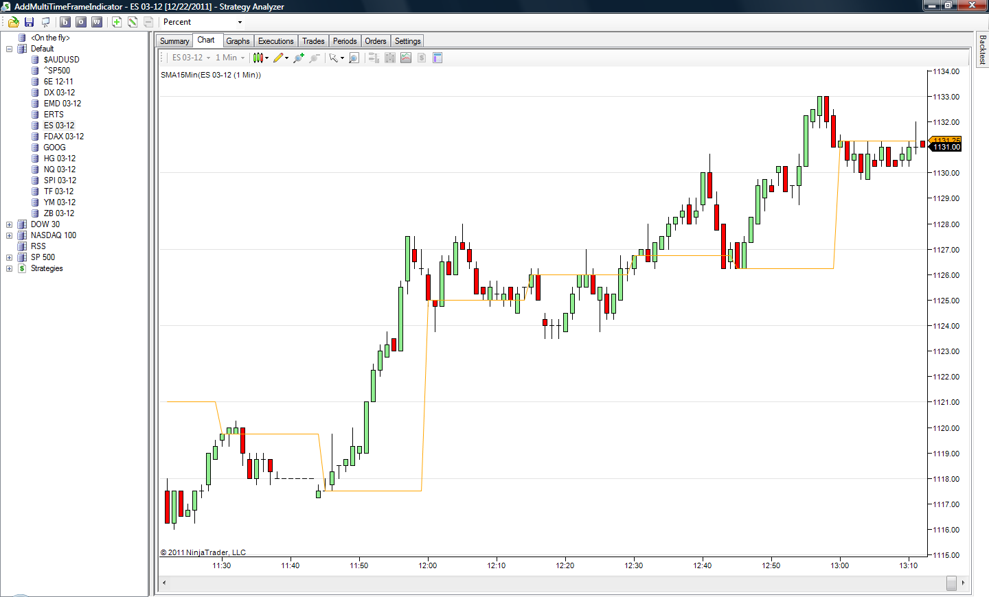 2. In OnBarUpdate() of the strategy itself BarsArray holds all dataseries (BarsArray.Length = 2), but CustomInd(0).Value.Set(SMA(BarsArray[1],20)[0]); does nothing as the indicator is not being plotted