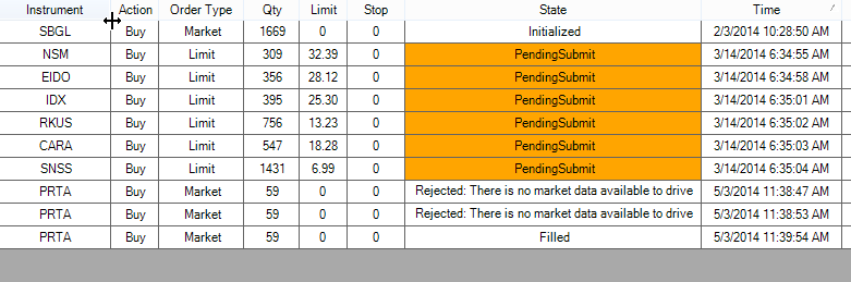 There are many "PendingSubmit" orders under order tab back to 3/14/2014. I reset the simulator, but can not get rid of them.