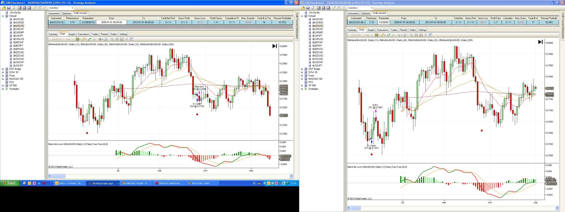 It is my strategy. In both cases walkforward period is: 01.01.2005 - 01.01.2012. Why there is: