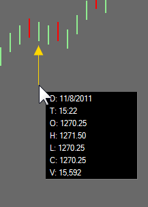 The HiLo bar style only has two color options, so such a range bar will be either green or red. If you select the Candlestick bar style, you would see bars as in the screenshot.