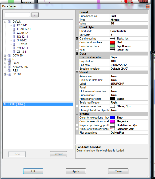 I cant see a Session template in the column definition section, the indicator is Default 24/7 . Enlarging the lookback period doesnt show the latest signals either which is what i would expect if ninja looks from the last bar backwards which is what i would expect, if you can confirm this is how it works?. attached screenshot from data series for EURUSD. The calculate on bar close is set to false on both. Any further ideas?