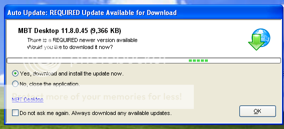 I then talked to MB Trading Tech Support. They informed me that the update was made mandatory because all versions prior to Desktop v. 11.8.0.45 would now have "incompatibility problems that would cause conflicts".