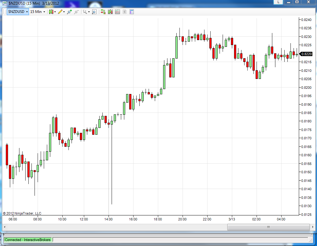 Symbol = NZD. Type = CASH. Exchange = IDEALPRO. Currency = USD. End Date/Time = 20120313 13:15:00 GMT. Duration = 5 D. Bar Size = 15 mins. What To Show = MIDPOINT. RTH Only = 1. Date Format Style = 1. Page Name = HIST_NZD_USD. Activate Page = TRUE.