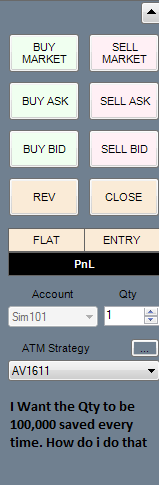 I have another question - "how do i save the default trade Quantity value" in Ninjatrader everytime I close and re-open the program?
