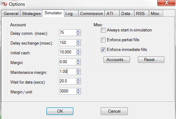 Brett, I did reset it, per my last post -- also, did you watch the video I posted above? I show that I reset the account and have a margin of 500 per unit, and still am able to trade 60+ units on a 10000 account.Originally posted by NinjaTrader_Brett View PostMost likely you did not reset the simulator for the settings to take effect.