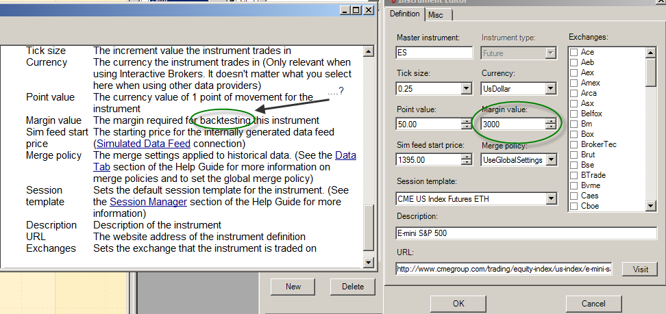 And sorry I mispoke - you can set the margin for a particular futures contract by going to Tools--> Instrument Manager--> edit the Instrument you wish to change--> set the "margin" valueLast edited by NinjaTrader_Matthew; 11-28-2012, 11:19 AM.MatthewNinjaTrader Product Management