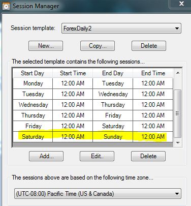 He advised me to copy the 'Default 24/7' session template and set it to my timezone (Pacific). Previously I was using the default Forex session template set to Eastern Standard time, which is the same time zone as the historical Fx data I test against. Then in the Walk forward settings you override the session template to use this Modified 24/7.