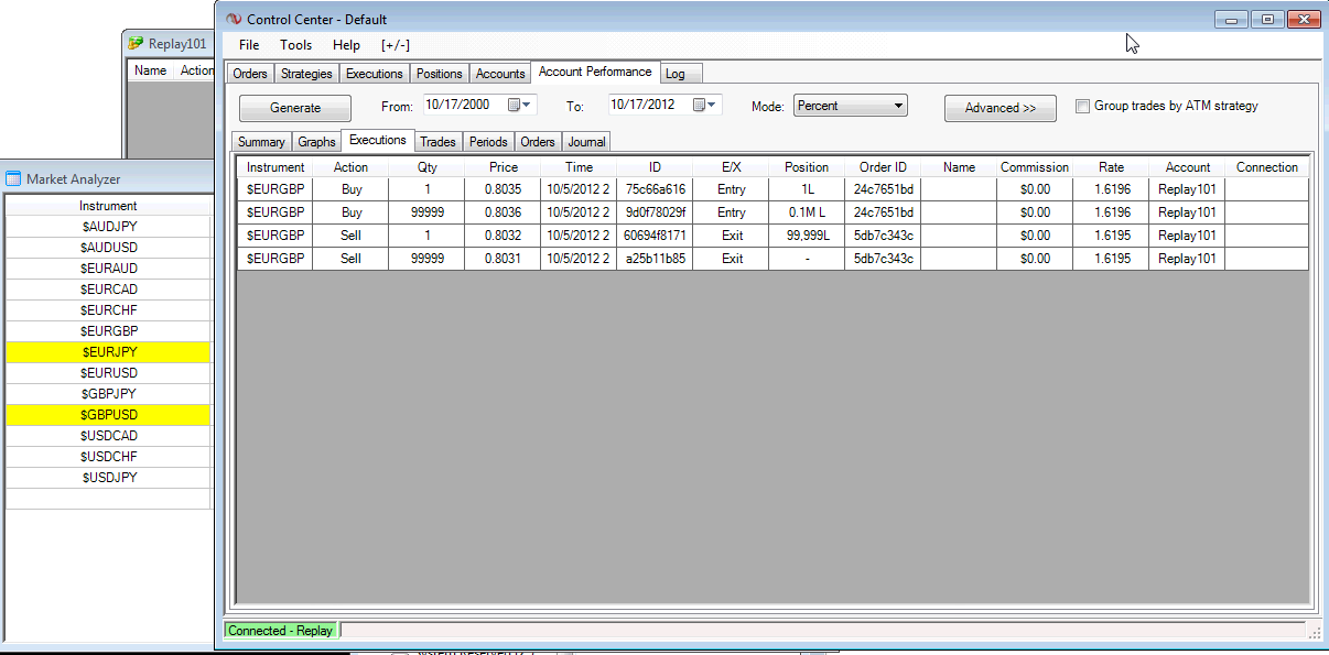 Taking this lesson learned back to Strategy Analyzer, the rate column in the executions tab is always 1 and doesn't change to the appropriate denomination. I've the correct data for all major cross-currencies in the database.