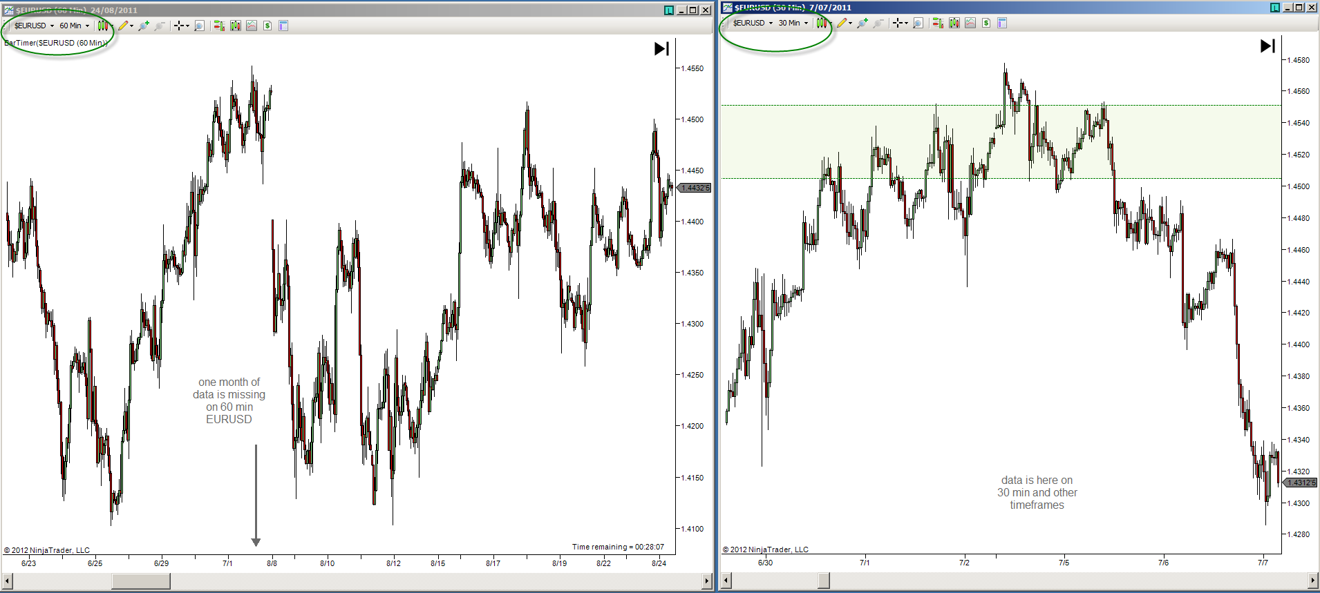 Here is an interesting one, when looking at my charts I have noticed there is one month of bars missing on the 60 min timeframe but data is there on other timeframes. Tried to close and re-open workbook did not change anything.