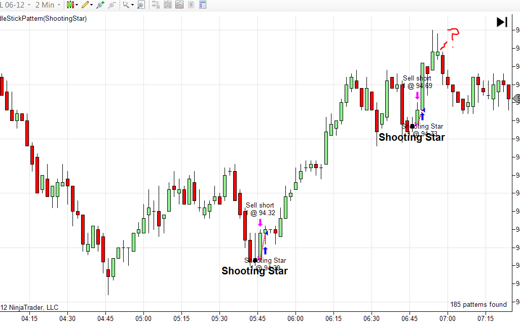 I'm trying to understand the definition of 'trend strenth' : The number of required bars to the left and right of the swing point used to determine trend. Included is a screenshot of a strategy to go short on a shooting star with a 10 candle bar trend strenth. Also included is a screenshot of chart of the /CL. (2 min.) I can't figure out how the program counts the bars to right and left of 'swing point' nor how to figure the swing point. My purpose is to find the shooting stars at the top of 2 min. trends (or other intra day trends of varying time frames).