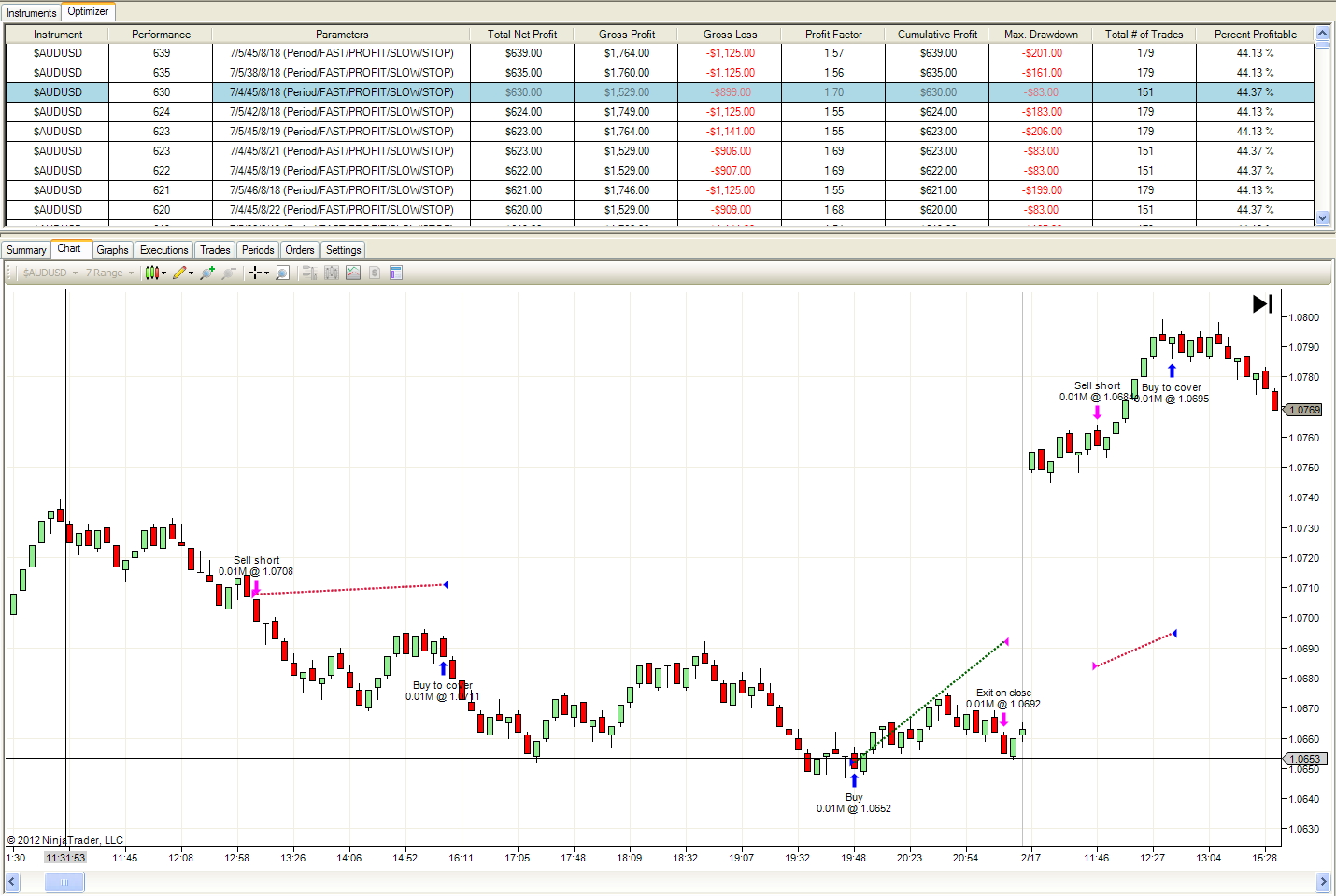 I've run into a couple of problems whilst optimising. Firstly the trades tab shows trades being recorded outside the times set by the session manager and secondly the Charts tab show trades being filled miles away from the price candles. Pictures attached.
