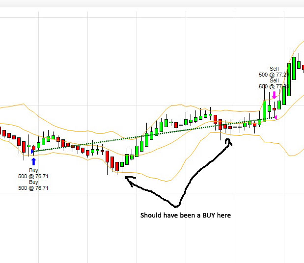 EDIT: In fact, I'm not even sure why the BUY and SELL orders were triggered on the bars indicated in your graphic. I would not have expected any trades from this time period, since none of the bar closes were above or below the BBs.Last edited by Kevin_in_GA; 06-07-2012, 08:18 AM.