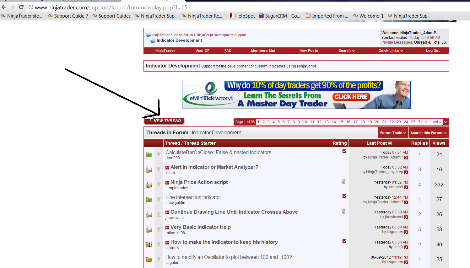 Then, click the "New Thread" button like in the screen shot.Adam P.NinjaTrader Customer Service
