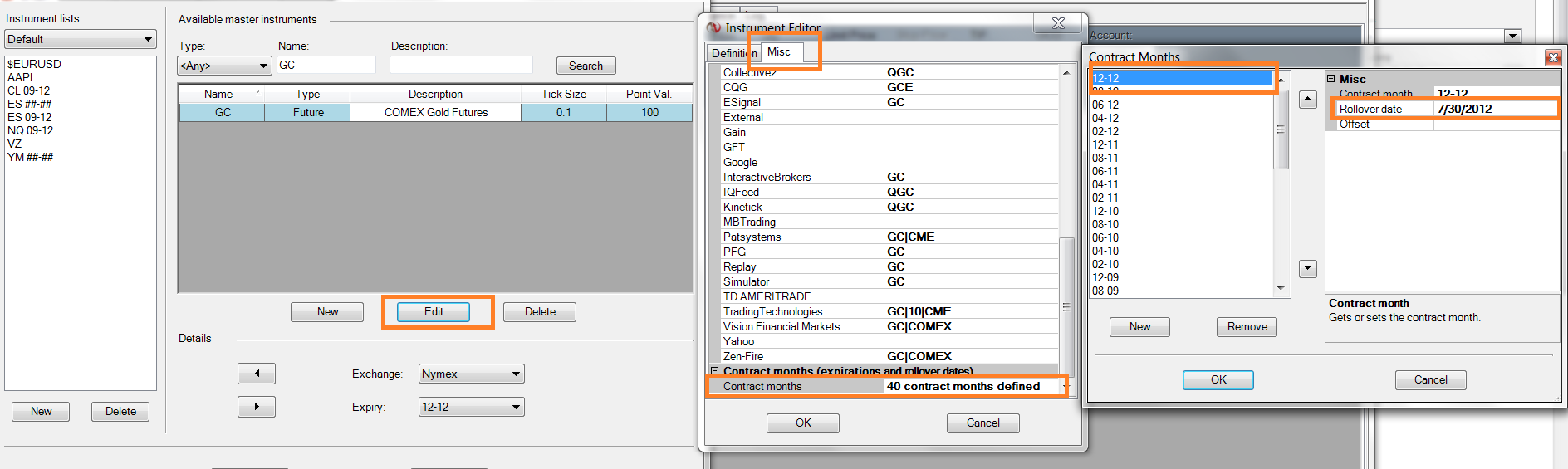 Also make sure the rollover date for December 2012 contract is set to 30 July. Please refer to this screenshot for more details.JoydeepNinjaTrader Customer Service