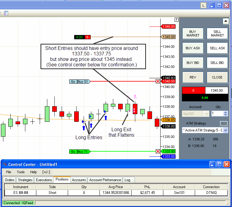 When entering a new position from a flattened state on the Sim101 account, the AvgPrice is not correct, and is almost 10 points off. This results in erroneous PnL information while still in the position.