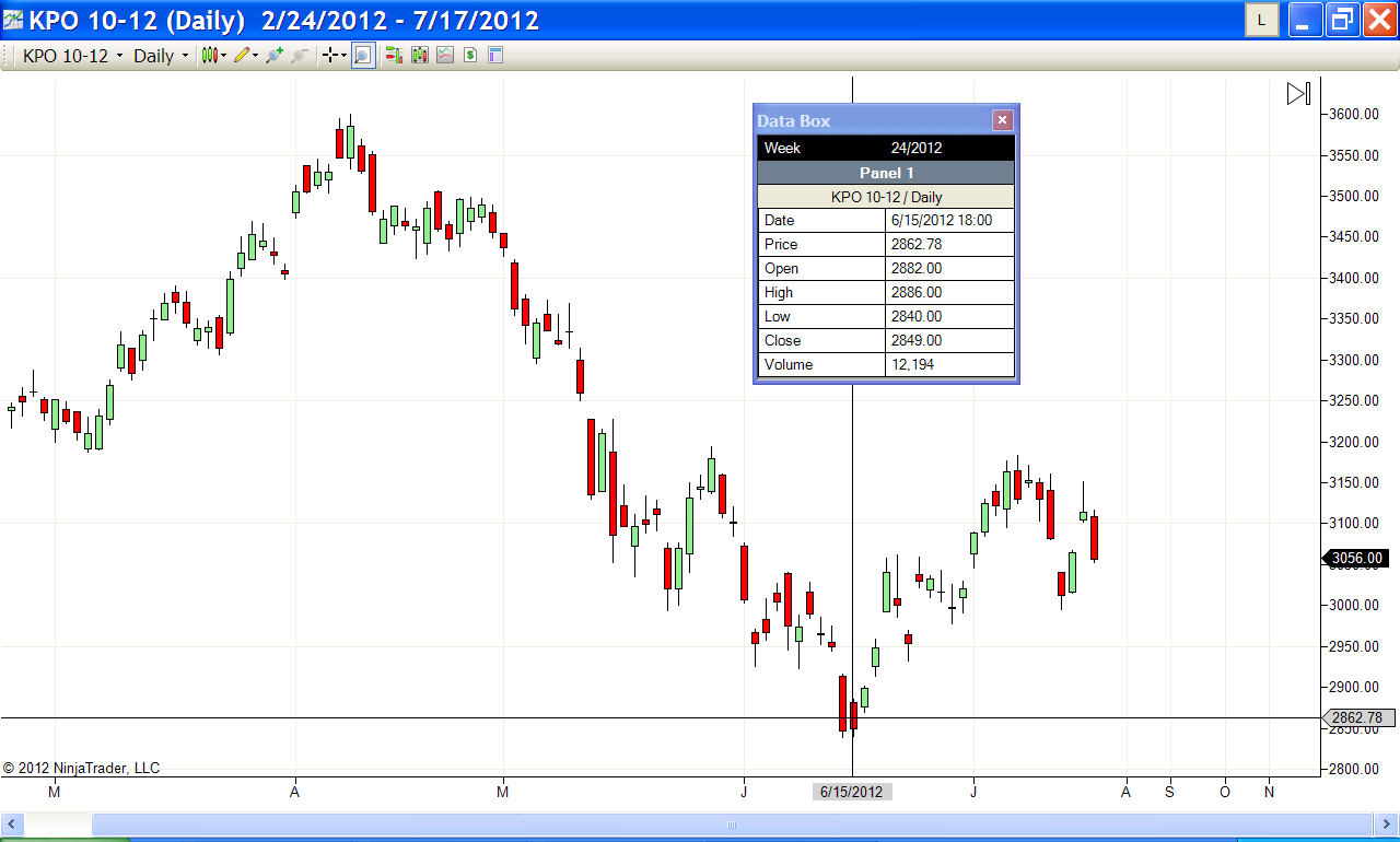 Please add the 10-12 expiry in the Contract Months window with the rollover date of July 16. Restart NinjaTrader. Subsequently create a brand new KPO 09-12 chart and check if an offset value of 1 is calculated.