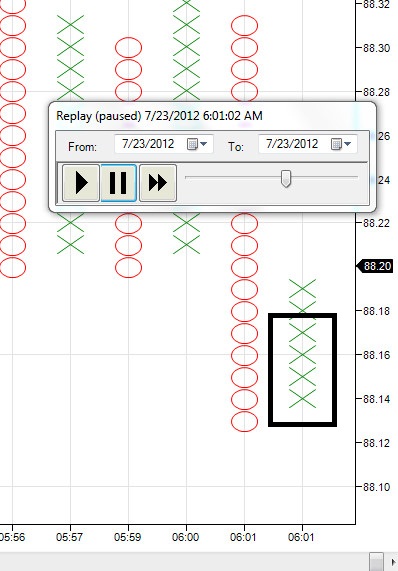 From then on price went up and didn't go below 88.18 for a while but there are still 4 "X" prints on the chart.