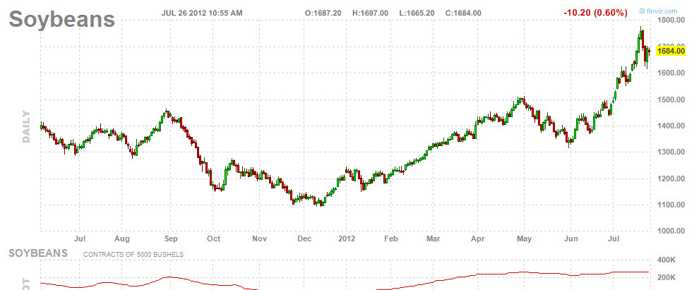 Sorry, I have shut down NT right now as I have to go out for a few hours... however here is a chart from finviz.com which shows (I presume) the latest soybeans chart, which has a high actually approaching 1800. Maybe I don't have the right settings. How about we forget about my particular set up and just see if you can get something up and running with a chart that shows a merge back-adjusted contract for ZS 11-12 going back 2 months, which basically matches the same chart for ZS 11-12 without any merging. If you can get that set up, I will assume that it is correct and use that. Then we can discuss how you did it...