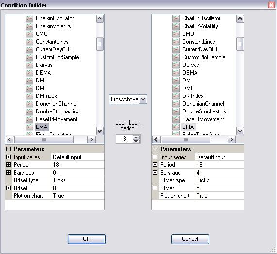 If you wish to compare whether the EMA(18)[0] is greater than the EMA(18)[4] then use the '>' (greater than) condition. So your code would read as the following in the NinjaScript Editor: