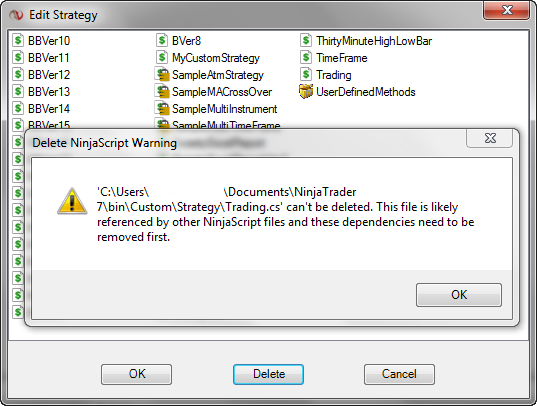 Did as you instructed and got a related Ninjascript error, but in a strategy that I wasn't working on. Attached is the screenshot. Does this mean that all Ninjascript strategies have to be compiled correctly before any other strategy can be enabled?