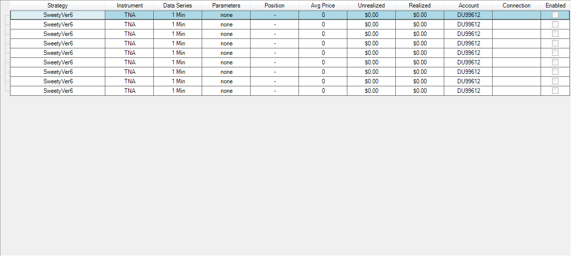 I've run into some sort of a snag this morning with enabling and disabling strategies from the 'Strategies' tab in NT.