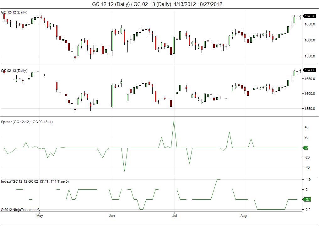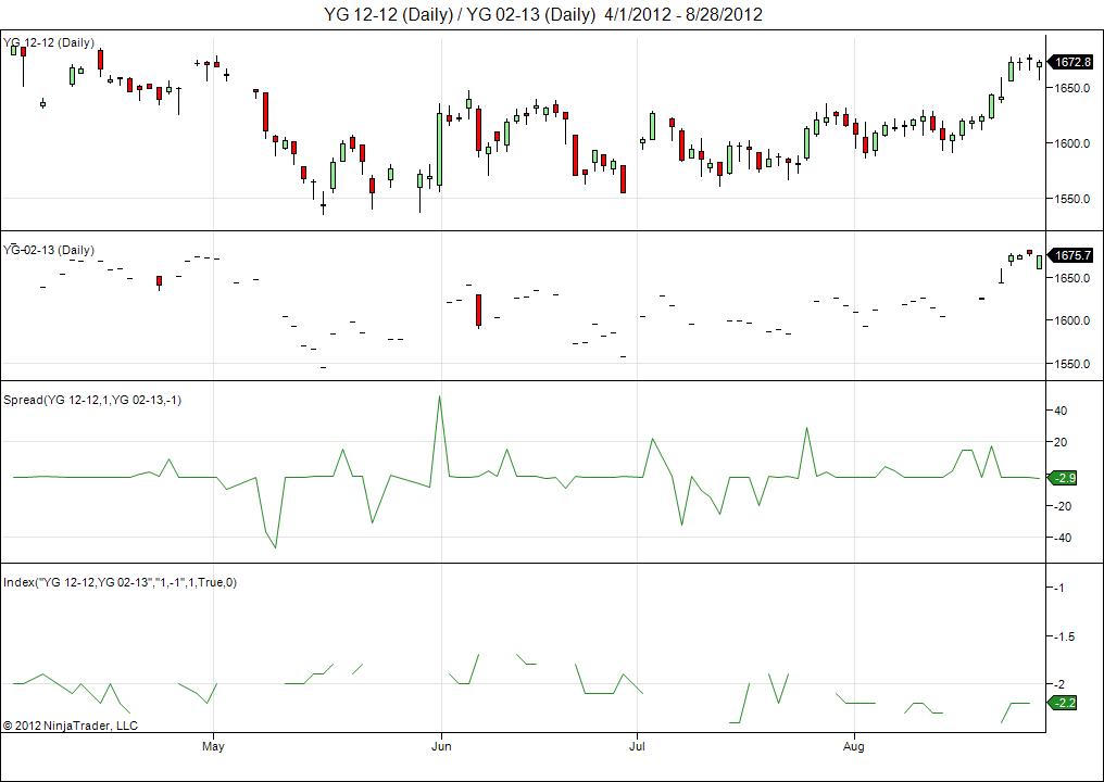 But of course, it's only practical to trade spreads of actively traded instruments. You could try using GC as a proxy for YG because it's more actively traded, but even GC-02-13 doesn't trade on some days.