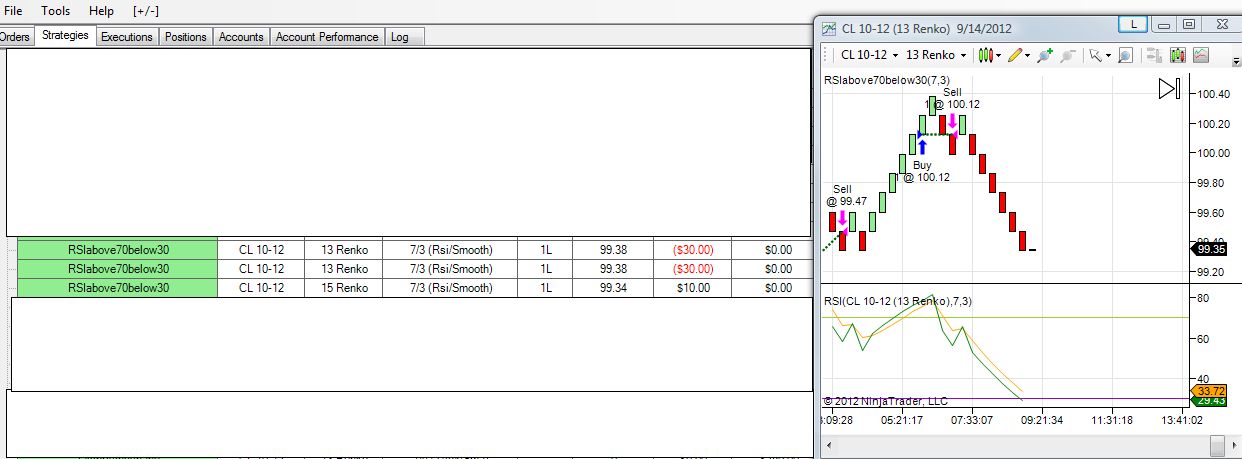in rsi discrepancy photo, the chart shows a low rsi which should have triggered a sell. But the strategy position is long.