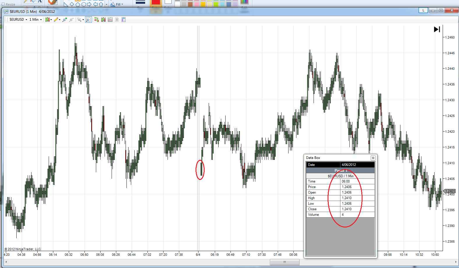 - chart of the eurusd showing same bar labelled (PC timezone 0-GMT) showing the chart showing bars the same as in the historical data manager - same date/time.