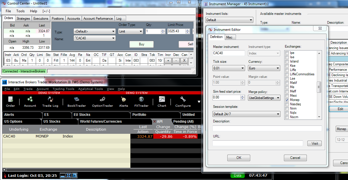 Tried with the following settings as per screenshot and symbol : CAC40, PX1, PX1|MONEP, but is not working.