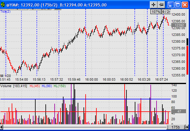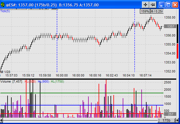 BTW, please note on that example, that there are three colors for both price & volume: up, down, and NO Change. No change is just as important as up or down.