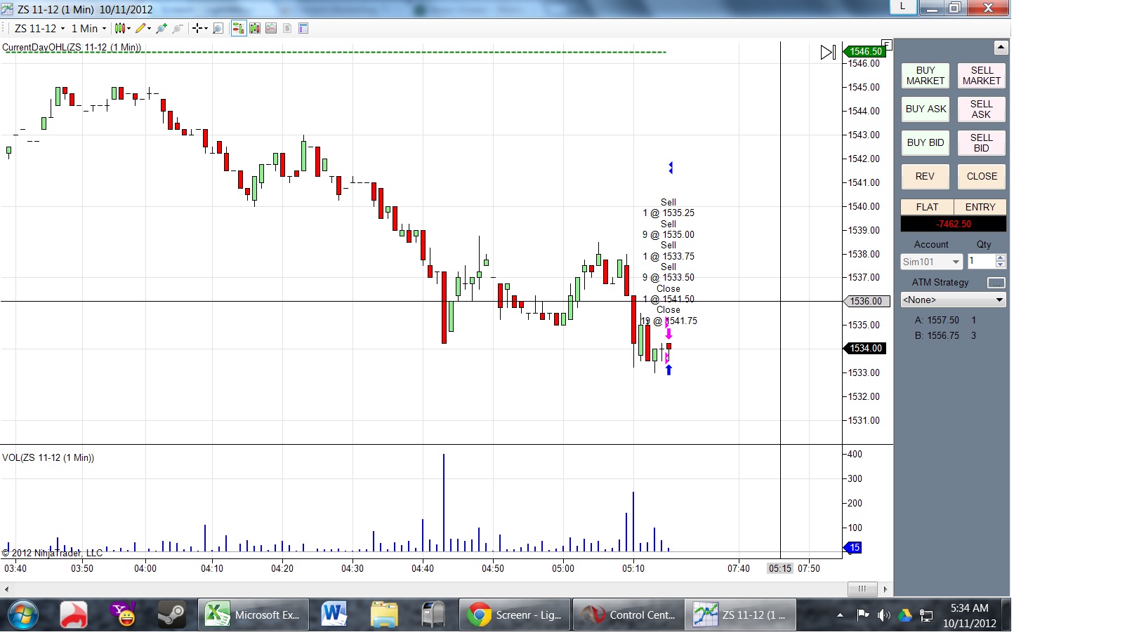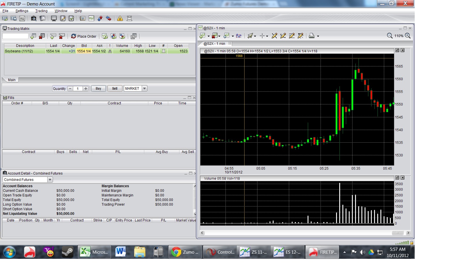 Okay, that would explain why there is no data from May or earlier, but why did I encounter the problem again today? I woke up early today to simulate the crop trade in real time at 5:30 AM PST, and once again the data completely failed to fill on the chart, but the trade was still accepted and plotted on the chart, resulting in a rather significant loss. I didn't even realize until after the trade executed that data had stopped plotting at 5:15 AM again.Originally posted by NinjaTrader_Matthew View PostWe were able to confirm that the eCBOT hours changed. Please refer to the following CMEGroup article from March 27, 2012: