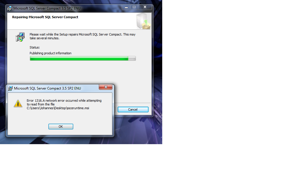 • SSCERuntime_x64-ENU.msi - No need to run this if you are on a 32 bit system, if you are on a 64 bit system you will also need to run this file, if you are not sure if you have a 64 bit system go ahead and run this file. If you are not using a 64 Bit operating system, the installer will cancel itself automatically