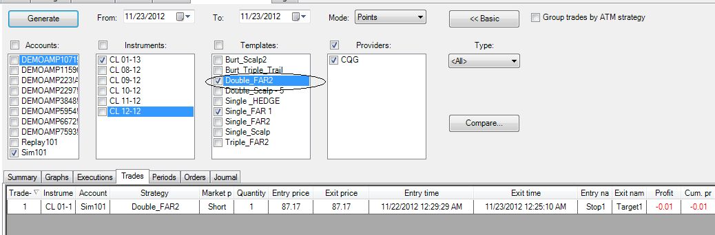 Attached are two files. In ninja_account_performace.jpg, I list out the trade using Single_FAR1 within 11/23/2012. There are two records but the 2nd one is not within the data range. In ninja_account_performance1.jpg, I want to show the trades including Double_FAR2 and Single_FAR1 but the origInal record from Single_FAR1 is gone. Have I misunderstood anything about the usage?